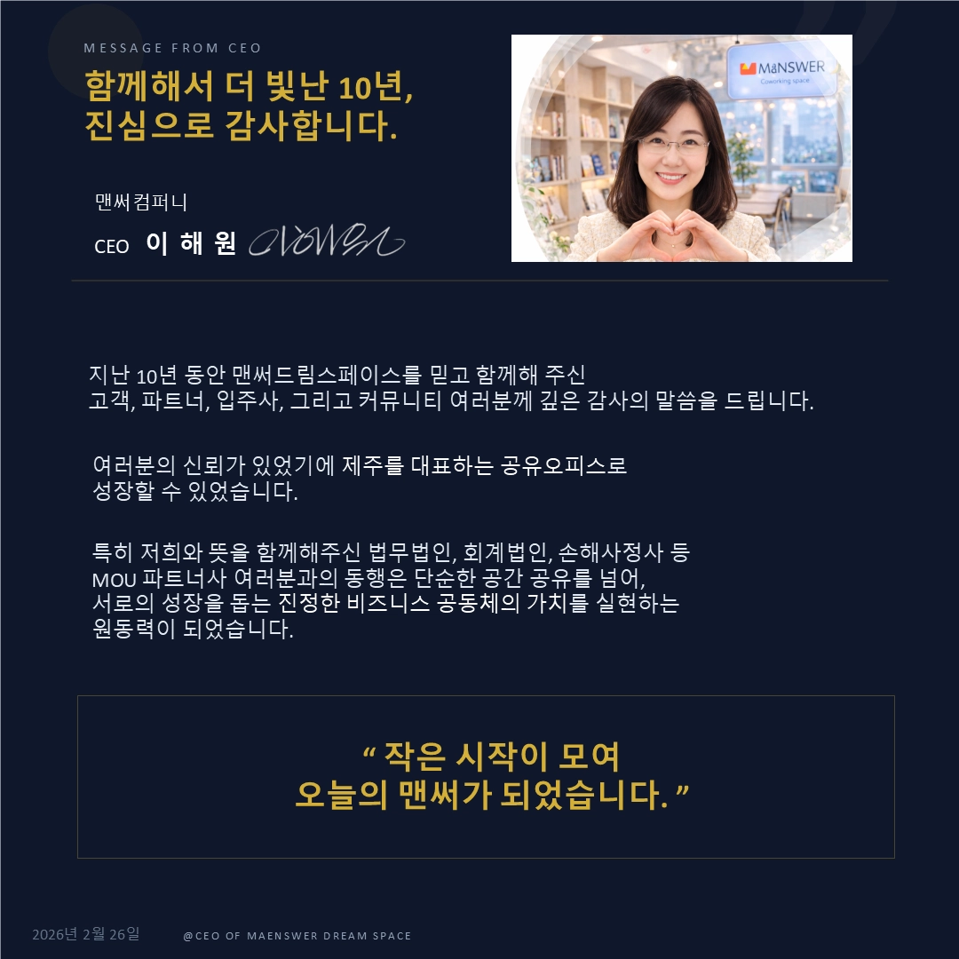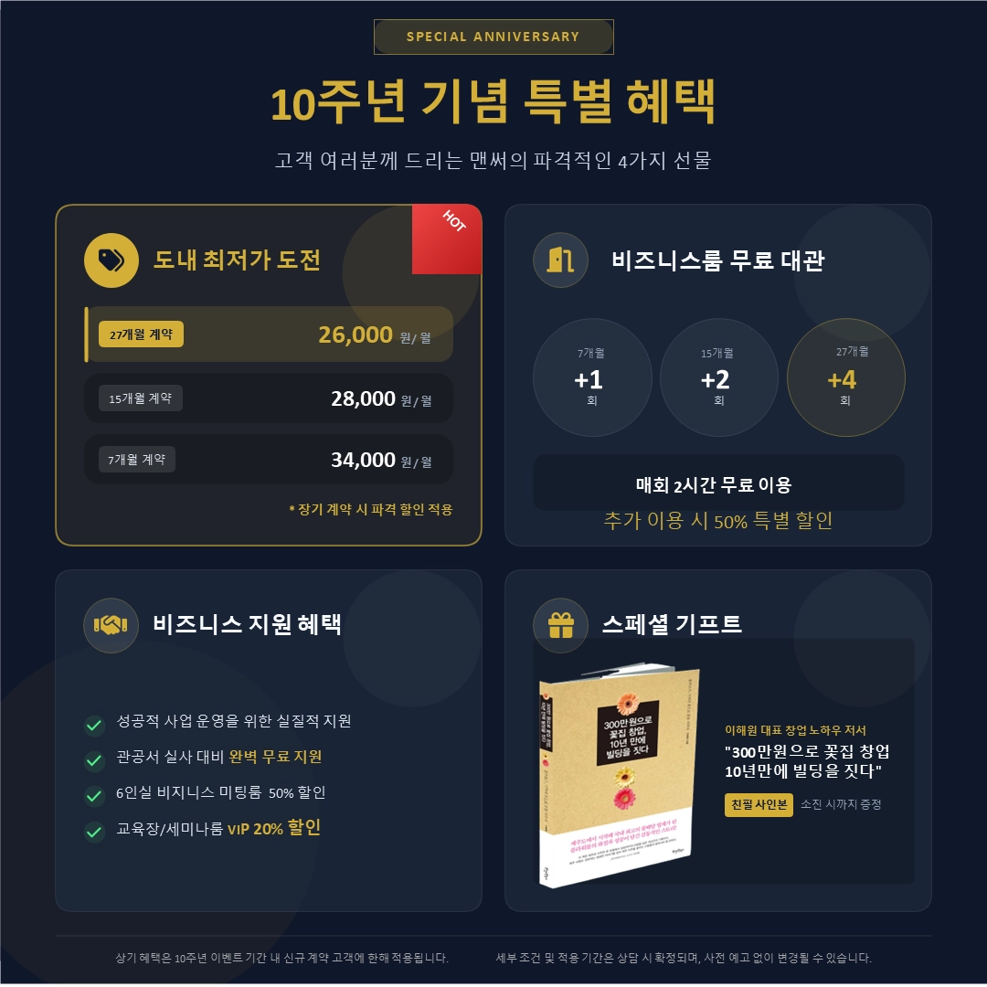[비상주오피스] 맨써드림스페이스 10주년 기념 특별 혜택